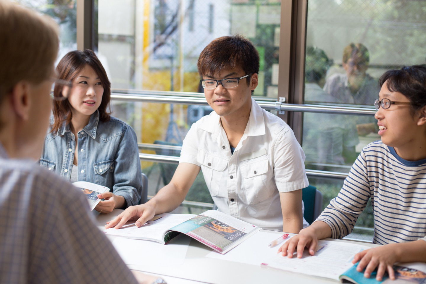 大阪の中心にありながら緑豊かな公園に面した静かな環境は、ロンドンの典型的な街角を思わせます。リラックスして学べる心地よい空間です。ぜひご見学にお越しください。フレンドリーな講師とスタッフがお待ちしています。